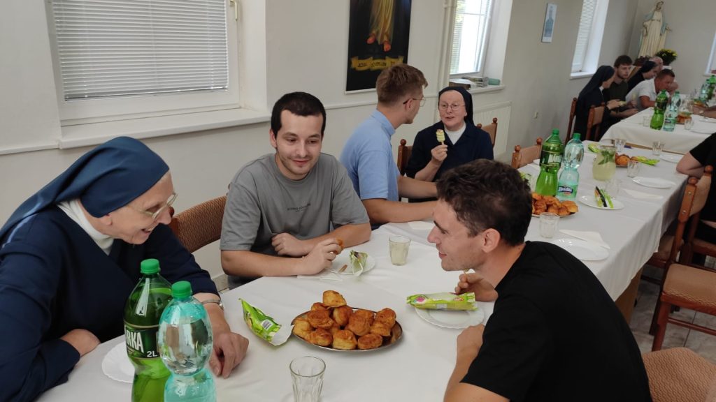Stretnutie sme začali sv. omšou a po nej sme sa navzájom spoznávali, ktorá sestra má vo svojich modlitbách dotyčného bohoslovca. Bolo to veľmi milé vidieť skupinky sestier so “svojimi zverencami”. Ani sa nám nechcelo rozísť… nakoniec spoločné foto a lúčenie. Najviac boli dojaté sestričky na vozíčkoch, keď mohli z blízka vidieť bohoslovcov, ktorí ostávajú v ich “duchovnom koši.”